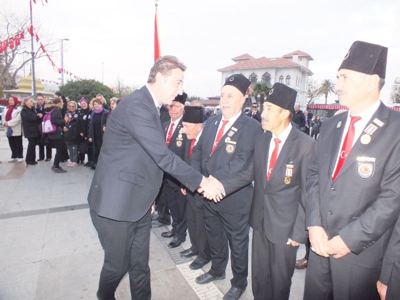 Törenlere, Bandırma Kaymakamı Engin Aksakal, Garnizon ve 6. Ana Jet Üs Komutanı Hava Pilot Tuğgeneral Selahattin Akalp, Belediye Başkanı Tolga Tosun, Onyedi Eylül Üniversitesi Rektörü Prof. Dr. Süleyman Özdemir, Başsavcı Cüneyt Demirdaş, Ağır Ceza Mahkemesi Başkanı Mehmet Tarakçı, siyasi parti temsilcileri, gaziler, sivil toplum örgütler temsilcileri, öğrenciler ve vatandaşlar katıldı. Ahmet PESEN