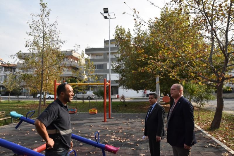 Edremit Belediyesi kent genelinde ki park ve yeşil alan düzenlemelerine devam ediyor. Buna bağlı olarak parklar ışıklandırılıyor. Son olarak Edremit Belediyesi İşletme ve İştirakler Müdürlüğü ekipleri tarafındanİkizçay Mahallesi Fakir Baykurt Parkı’nda ışıklandırma çalışmaları yapıldı. Kısa sürede tamamlanması hedeflenen çalışmanın ardından yapılacak çevre düzenlemesiyle birlikte park yeni hali ile hizmete açılacak. Edremit Belediye Başkan Yardımcısı Ahmet Elman da yapılan çalışmaları yerinde inceleyerek ekiplerden bilgi aldı. Elman daha sonra ekiplerin tamamladığı Altınkum Mahallesi Sedir Caddesi üzerindeki parkta ve Çınarlı Park olarak bilinen yerde yapılan ışıklandırmaları kontrol etti.