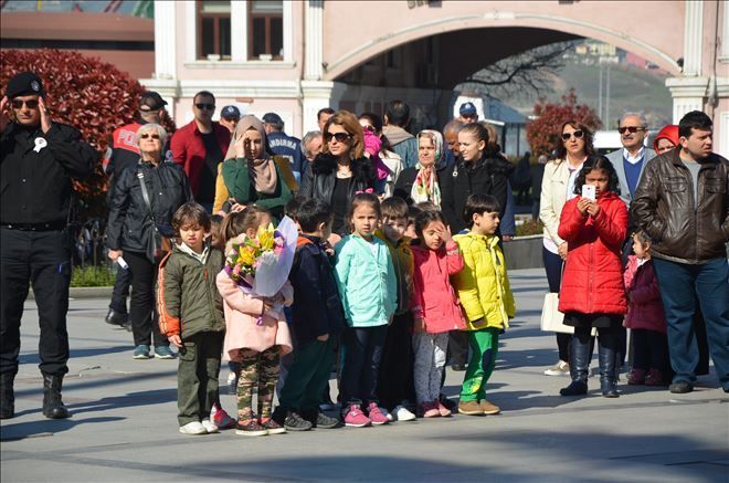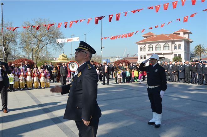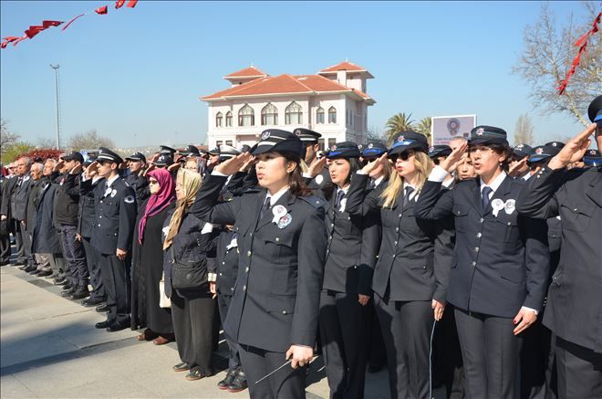 Saygı duruşu ve istiklal marşının okunması ardından görevli bir polis memuru günün anlamı ve önemini içeren bir şiir okudu.