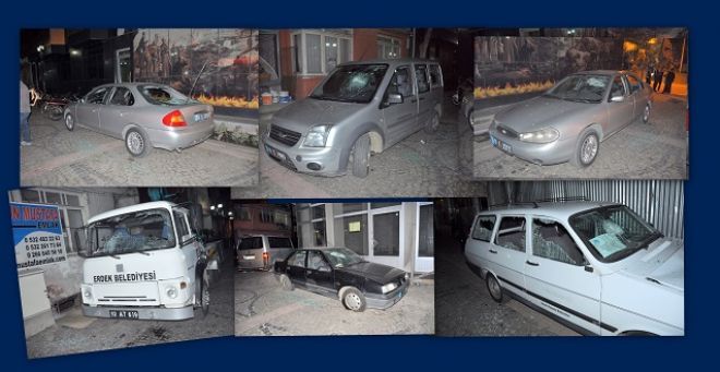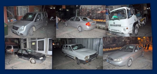 Erdek Belediyesi çevresinde park halinde bulunan 5 araç, beyzbol sapası ile parçalandı.
