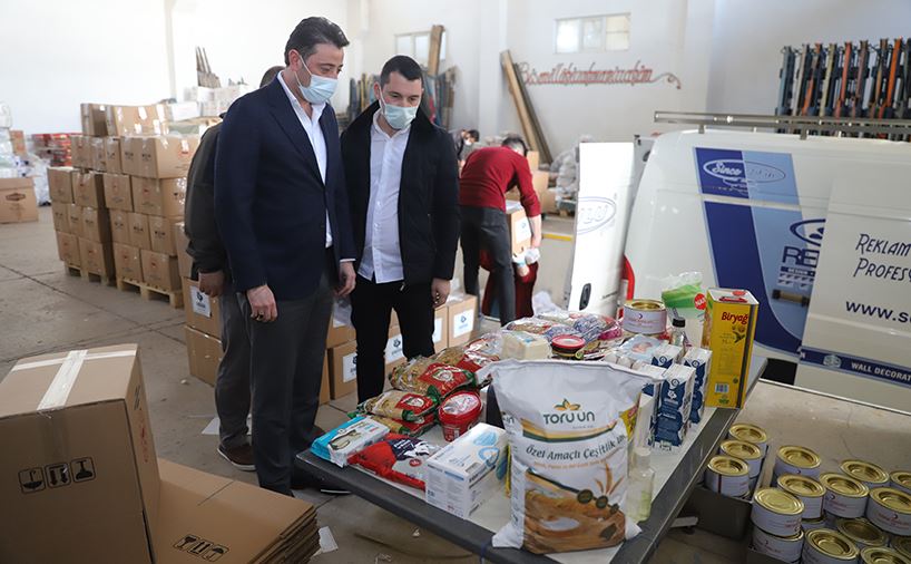Başkan Tolga Tosun: “Tüm dünyada ve ülkemizde salgının olumsuz etkileri ekonomik alanda da kendisini gösterirken Belediyemiz, Kaymakamlığımız, Kızılayımız, Bandırma Ticaret Odamız, Bandırma Ticaret Borsamız, Yardım Vakıflarımızın ve birçok hayırsever iş adamımızın katkılarıyla oluşturulan Ramazan erzak kolilerimiz bu zor süreçte ihtiyaç sahibi olan ailelerimize destek sağlamak için hazırlanıp dağıtılıyor. Özenle ve hijyen kurallarına uygun bir şekilde hazırlanan yardım kolilerinin her birinde gıdadan temizlik maddesine kadar pek çok faklı ürün yer alırken kentimizde ihtiyaç sahibi olan ailelere Bandırma Belediyesi’nin görevli personelleri tarafından dağıtımları düzenli olarak devam ediyor” dedi.