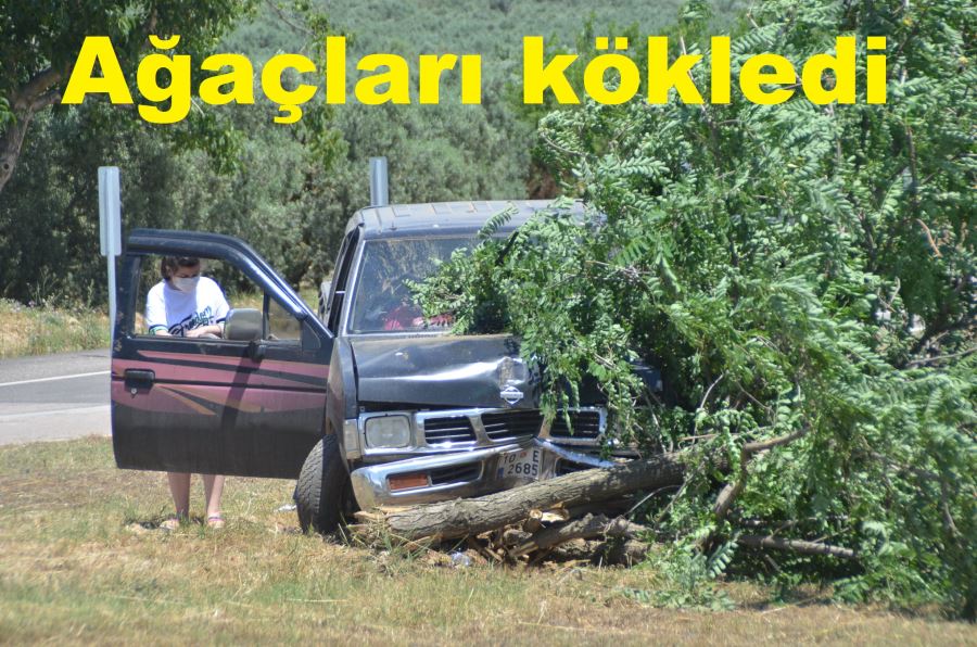 Orta refüj'de bulunan iki ağacı biçerek durabilen kamyonette maddi zararın yanı sıra tehlike arzetmeyecek şekilde yaralanmalar oldu.