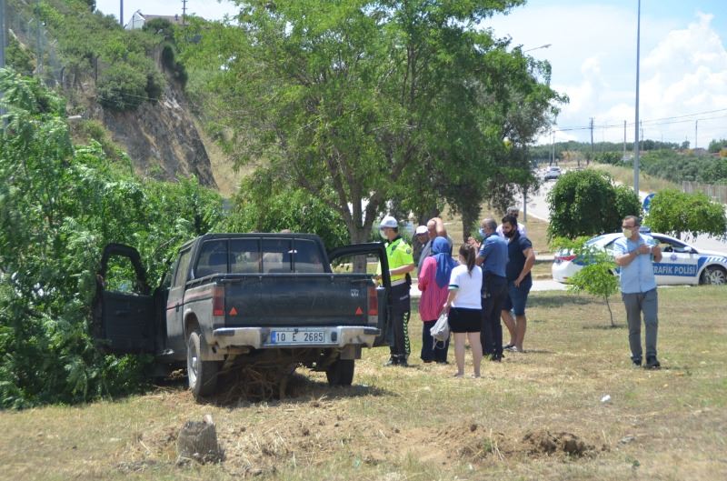 Direksiyon hakimiyetini kaybeden araç orta refüjde ağaçları biçti