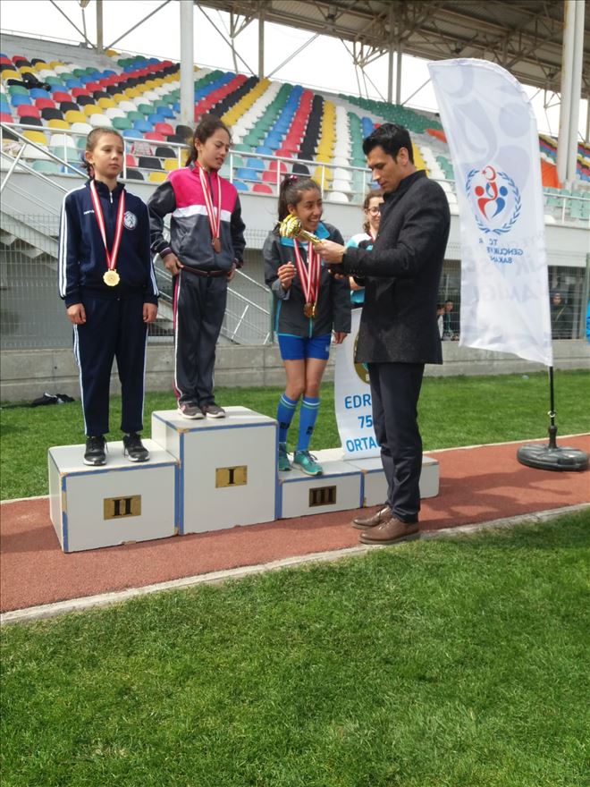 ?Okul sporları kapsamında yarışmalara, Bandırma´dan yıllardır katılan tek ortaokul takımıyız. Bu yarışmada öğrencilerimiz, efsane atlet İsmail Akçay ile de tanışma fırsatı bularak elini öpüp sohbet ettiler. Küçük kızlar kategorisine bir takım ile katıldığımız yarışmalarda 60 metre ve 800 metrede Nesrin Bulut, il birincisi olarak altın madalya kazandı. Diğer kızlarımız da 6 gümüş madalyanın sahibi oldular. İlimizde 11 takımın mücadele ettiği küçük kızlar takım sıralamasında takımımız, il üçüncülük kupasını kazandı.?
