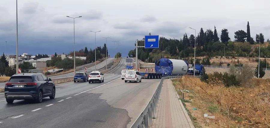 İlginç gelişme bugün Bandırma-Erdek karayolu Liman girişi kavşağında yaşandı. Bandırma Organize sanayi bölgesinde imal edilip dünyanın dört bir köşesine sevk edilen devasa rüzgar gülü gövdelerini taşıyan uluslararası lojistik firmasının devasa TIR'ı arkasında önünde bulunan eskortlara rağmen 4x4 lük liman tabelasını görmeyip kavşağı geçinde trafik 20 dakika iktifaya uğradı.