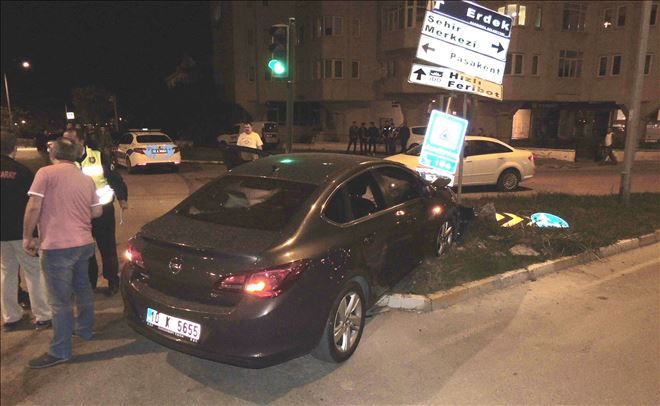 Kırmızı ışık ihlali sonucu kavşakta süratle bir birleri ile çarpışan otomobillerde hava yastıkları açıldı, sürücüler yara almadı ancak araçlar pert oldu.
