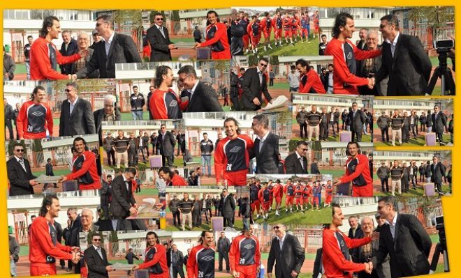 Sarı, daha sonra stat içinde bölge şampiyonalarına hazırlanan atletizm takımını ziyaret etti.