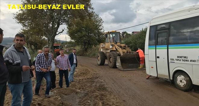 İş makineleri Erdek-Bandırma yolunu kapatan tonlarca çamuru açmak için saatlerde çalışmak durumunda kaldı.