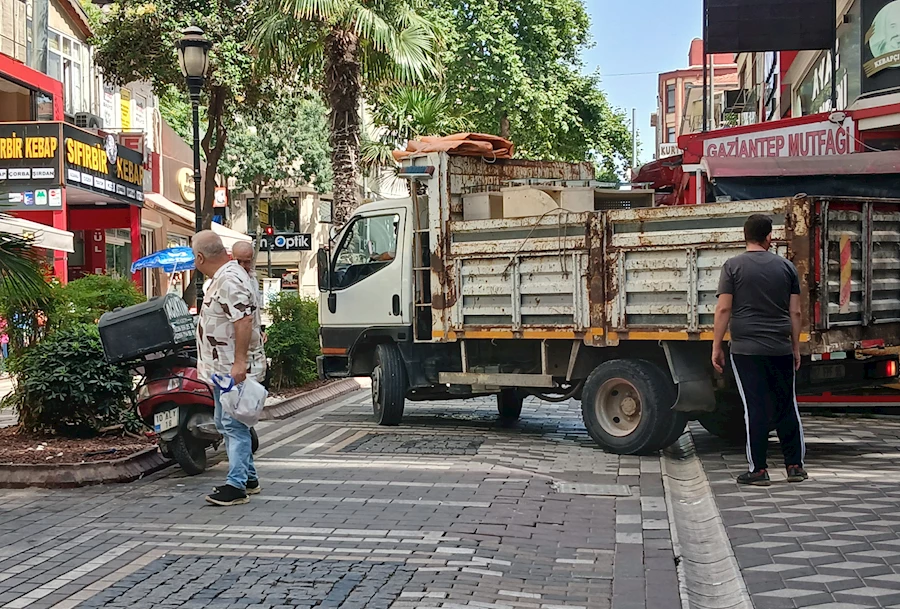 Böylece 2003 yılında esnaf ve vatandaş rahat etsin diye aldığımız karar 2013 yılında bir işe yaramadı. Bir kamu alanı olan kaldırıma daha önce işyeri önüne araç koyuyorlar diye şikâyet eden esnaf bugün ayni yeri camekânla kapattı. Özellikle dar bir cadde olan Sevgi Yolu, Hükümet Caddesi, Şehit Süleymanbey Cad. bir bölümü ile Saatçiler Caddesi’nin tamamı camekânla örtüldü, yetmedi camekânla kapatılan yerin önüne masa sandalyeler de atıldı…