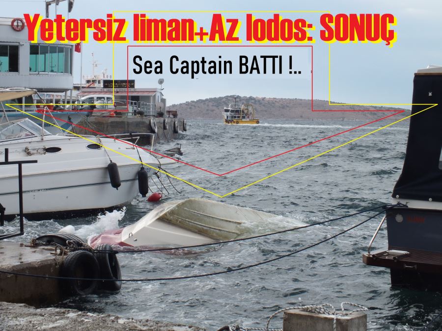 Gelinen noktada bugüne dek bir çok teknenin battığı, bir çok teknenin parçalandığı Erdek limanında akşam gece yarısından sonra başlayan lodos Çay bahçeleri önünde demirli 6.80 lik Sea Captain'ı batırdı.