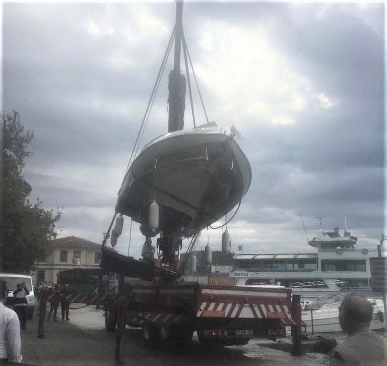 Sea Captain'ın sahibi İlhan Yıldız önemli ölçüde zarar gören teknesini kurtarıcı-vinç vasıtası ile çekiciye yüklüyerek Karacabey'e götürdü.