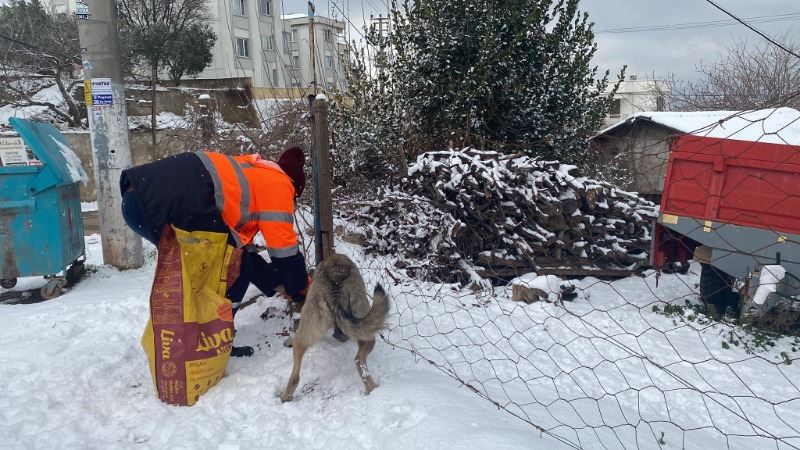 Sokaklarda yaşayan hayvanların bu soğuk kış günlerini atlatabilmeleri için ekipler mama dağıtım çalışmaları kar yağışı süresince rutin olarak devam edecek.