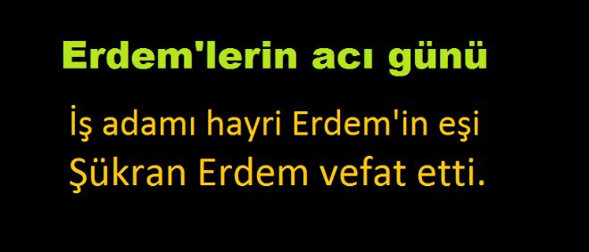 Erdemler Nalburiye Sahibi, Hayri Erdem`im eşi Şükran Erdem vefat etti.