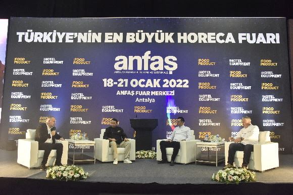 32.ANFAŞ Hotel Equipment ve 28. ANFAŞ Food Product fuarları, Türkiye’nin en büyük aşçılık buluşmasına ev sahipliği yaptı. Şefler, fuar süresince hünerlerini sergilemenin yanında, sektörün sıkıntılarını, beklentilerini ve çözüm önerilerini ‘Turizm Destinasyonlarında Farklı Yaklaşımlar’ başlıklı panelde dile getirme fırsatı buldu. Türkiye’nin çok önemli ve büyük otellerinde görev yapan şefler; Türk mutfağının dünyadaki yeri, turizme olan katma değeri ve gelecek için neler yapılması noktasında görüşlerini aktardı. Özellikle pandemi sonrası yaşanan tedarik sorununu yerel ürünlere yönelerek çözdüklerini belirten deneyimli şefler, ülke tarımındaki zenginliklerin Türk turizmine kazandırılması noktasında sektör karar vericilerine çağrıda bulundular.
