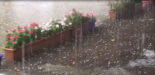 Erdek`te yağmur ile birlikte dolu yağdı. Plajlarda zorunlu mola