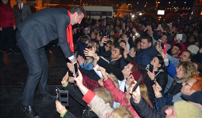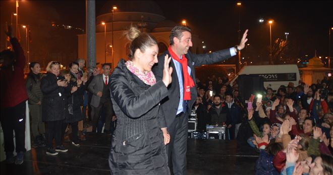 31 Mart yerel seçimlerini farklı kazanan Millet İttifakı Bandırma Belediye Başkan Adayı Tolga Tosun, Balkon konuşmasını Cumhuriyet alanında kurulan platformda yaptı.