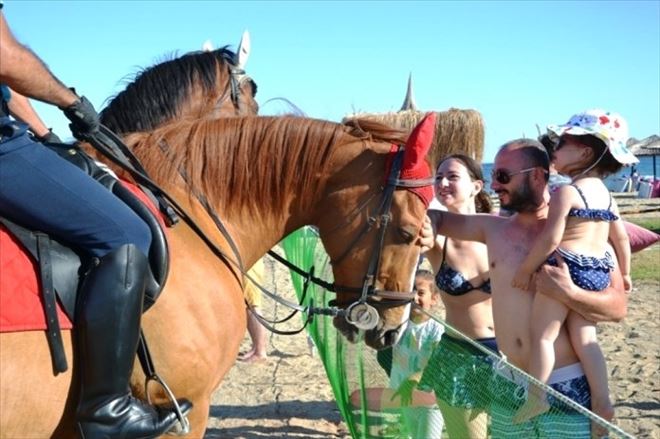 Özel eğitimli atların duruşu ve asaleti plajlarda dikkat çekiyor. Turistlerin de onlarla anı fotoğrafı ve selfie çektikleri gözleniyor.