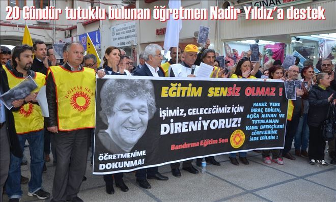 Akyaz, 20 gün önce tutuklanan Öğretmen nadir Yıdız için ise, "Hükümetin baskı ve yıldırma politikası bilindiği gibi Bandırma dada kendini göstermiş, 20 gün önce meslektaşımız Nadir Yıldız asılsız bir ihbar sonucu hukuksuz olarak evinden alınarak tutuklanmıştır."dedi.