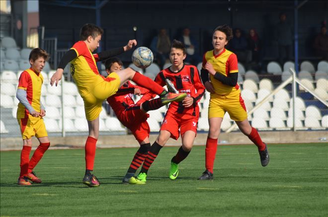 U-14 lig için oldukça sert bir rüzgârda başlayan karşılaşmanın ilk 35 dakikası iki ekibin sonuçsuz kalan karşılıklı ataklarla sonlandı.