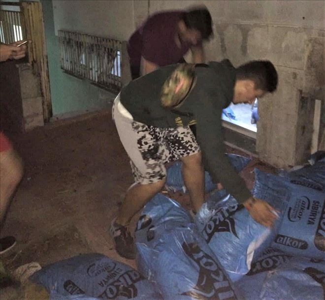 28 Kişilik "Bandırma Jets" Amerikan futbol takımı 10 ton okul kömürünü 25 dakikada depora istifledikten sonra, kalan süreyi Edincik sentetik halı sahada idman yaparak doldurdu.