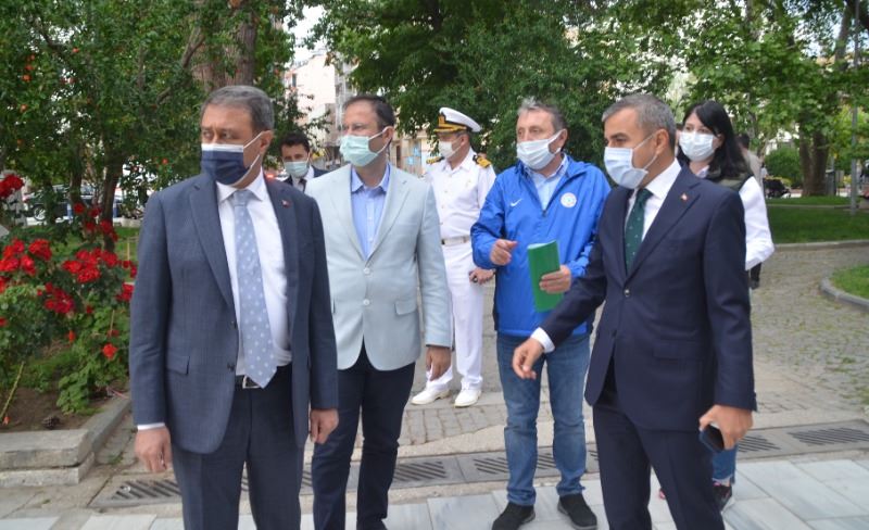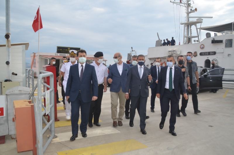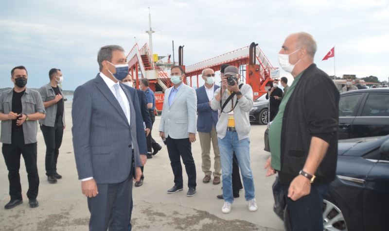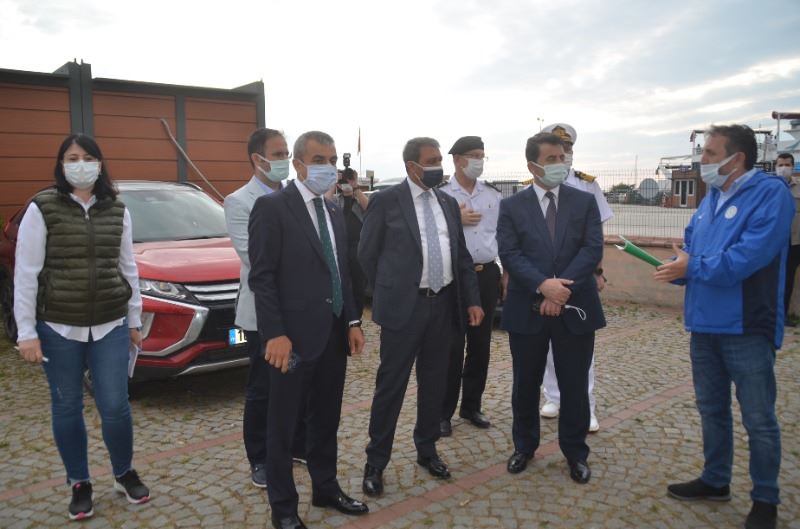 Erdek, Ocaklar Çetin Otel'de planlanan bölge güvenlik koordinasyon toplantısı ardından Erdek İskelesine gelerek Sahil Güvenlik gemisi ile körfez'e açılan Vali Hasan Şıldak, Bandırma Onyedi Eylül Üniversitesi, Denzicilik fakültesi dekanı Prof. Dr. Mustafa Sarı, Tarım il Müdürü, İl Çevre Müdürü, Bandırma Koyunculuk araştırma enstitüsü yetkilileri ile yaptıkları inceleme sonrası gerçekleştirdiği basın açıklaması ile Müsilaj olumsuzluğunun önlenmesine ilişkin yapılacak önlemler hakkında bilgi, verdi.