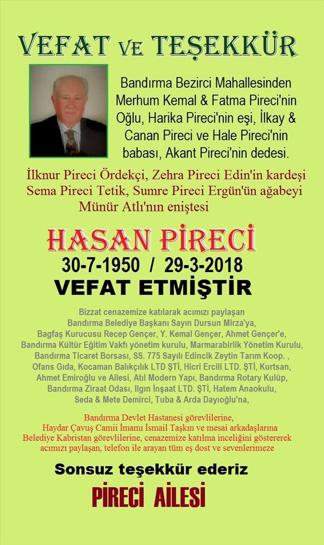 Anahtar Kelimeler: VEFAT TEŞEKKÜR