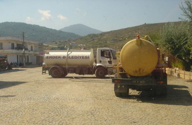 Erdek Belediyesinin gönderdiği araçlar muhtar Hamdi Çakır nezaretinde tüm sokak ve meydanı yıkayarak temizledi.