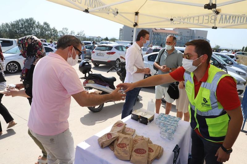 Bandırma Belediyesi, Belediye Başkanı Av. Tolga Tosun’un koronavirüs önlemleri altında yapılan Yükseköğretim Kurumları Sınavı (YKS) öncesi, sınav merkezlerinin önlerinde maske, dezenfekten, su ve simit dağıtımı gerçekleştirdi.