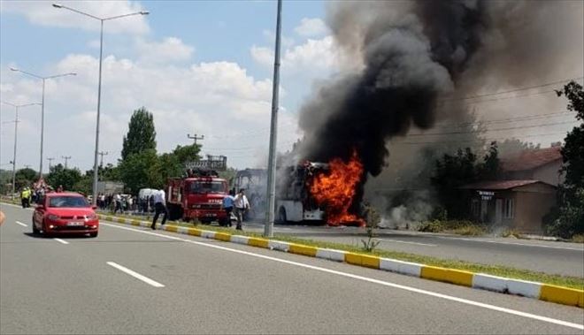 Yangın itfaiyenin müdahalesiyle söndürüldü ancak otobüsün tamamı yandı.