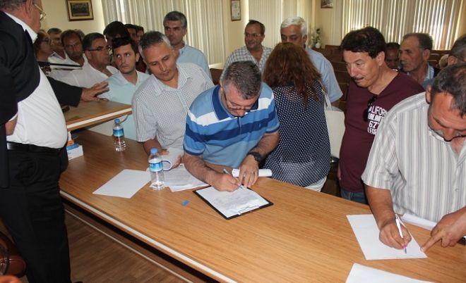 Edremit Ticaret Odası toplantı salonunda yapılan ‘Değerlendirme Toplantısında’ TARİŞ Zeytin ve Zeytinyağı Birlik Başkanı Cahit Çetin kanun tasarısına karşı ilk imzayı attı ve toplantı sonunda sonuç bildirisi yayınlandı.