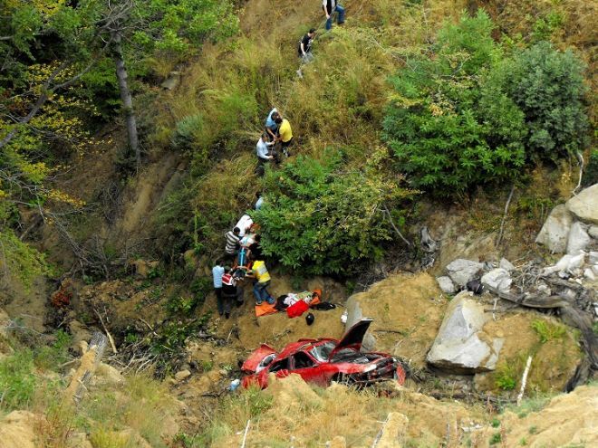Yaralılar otomobilden çıkartılın, sedyelere bağlandıktan sonra, ipli kızak vasıtası ile yukarıya çekildi.