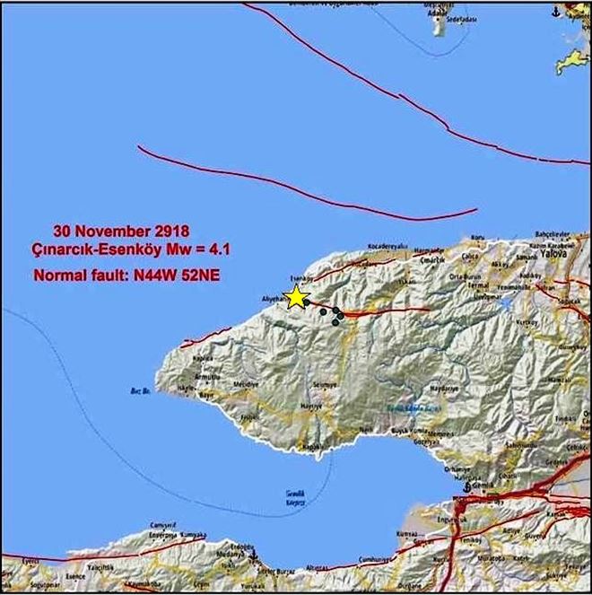 30 Kasım 2018 tarihinde Yalova-Çınarcık-Esen köy fay hattında lokal saat ile 05:36´da Boğaziçi Üniversitesi Kandilli Rasathanesi kayıtlarına göre aletsel büyüklüğü Ml=4.3 (Mw=4,0) olan orta şiddette bir deprem meydana gelmiştir. Deprem İstanbul, Kocaeli, Bursa ve Tekirdağ gibi çevre illerde de hissedilmiştir. Depremin büyüklüğünü AFAD Mw=4,1 olarak açıkladı.