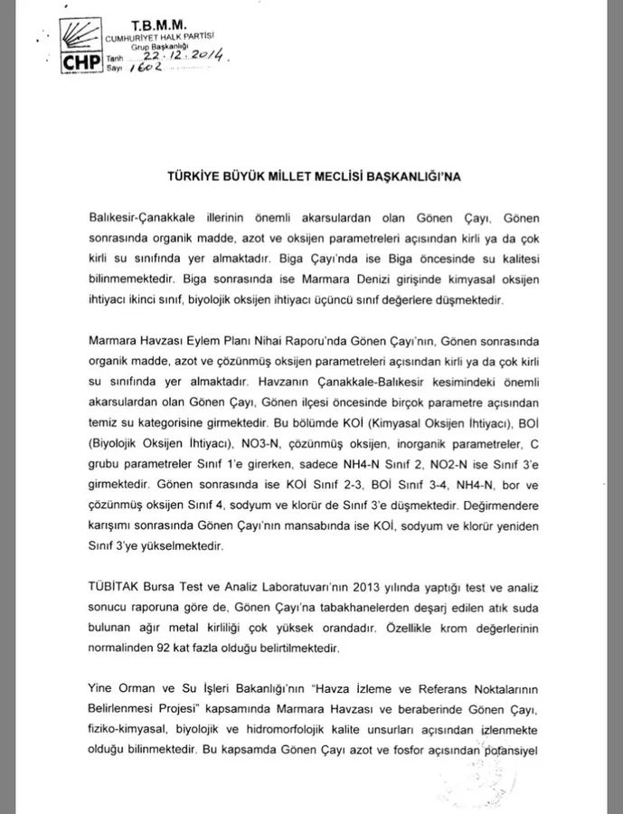 Yukarıdaki bilgiler, 2014 tarihinde TBMM’ye verdiğimiz araştırma önergesinde yer alıyor. Aradan geçen sürede kirlilik verilerinin daha da arttığını Mustafa Sarı hocanın raporu da ortaya koyuyor.